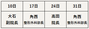 - 1月:土曜日の整形外科担当医
